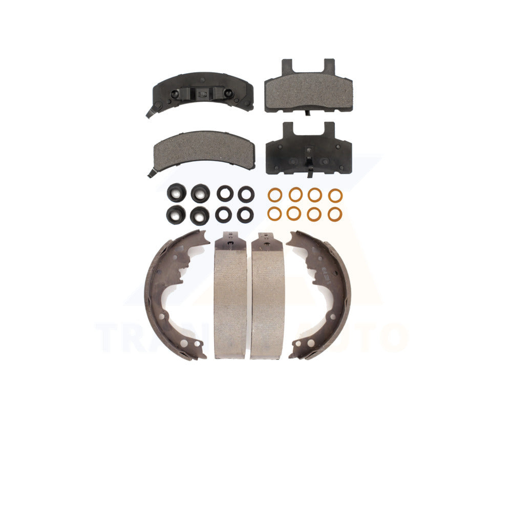 - INCLUDES: 1x Front Semi-Metallic Positive Plus Brake Pad Set (Hardware Included) + 1x Rear Top Quality Drum Brake Shoe Set