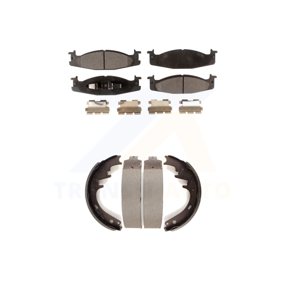 - INCLUDES: 1x Front Semi-Metallic Positive Plus Brake Pad Set (Hardware Included) + 1x Rear Top Quality Drum Brake Shoe Set