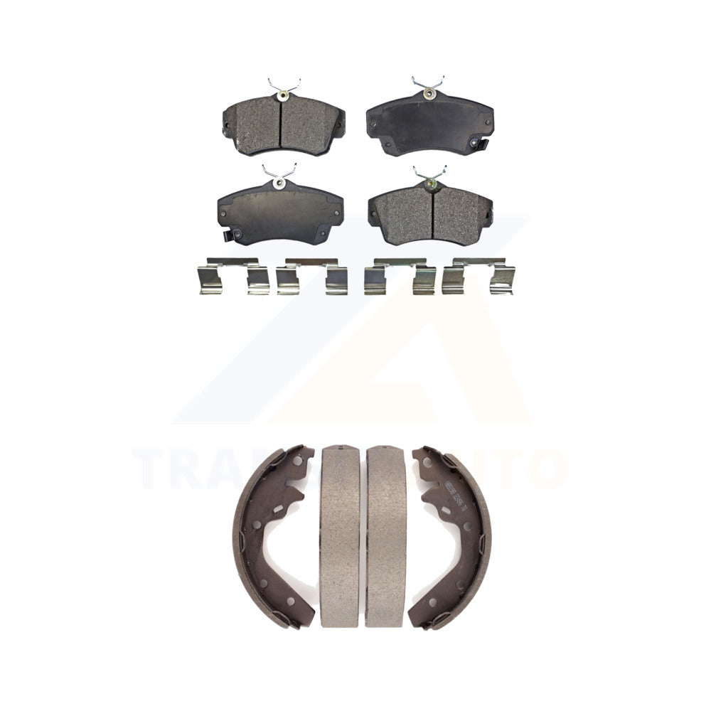 - INCLUDES: 1x Front Semi-Metallic Positive Plus Brake Pad Set (Hardware Included) + 1x Rear Top Quality Drum Brake Shoe Set