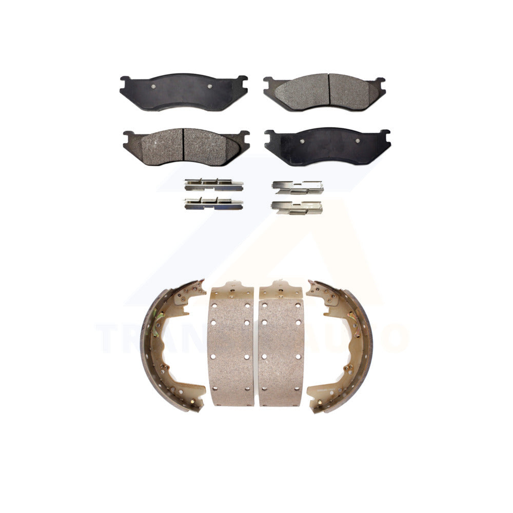 - INCLUDES: 1x Front Semi-Metallic Positive Plus Brake Pad Set (Hardware Included) + 1x Rear Top Quality Drum Brake Shoe Set