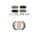 - INCLUDES: 1x Front Semi-Metallic Positive Plus Brake Pad Set (Hardware Included) + 1x Rear Top Quality Drum Brake Shoe Set