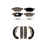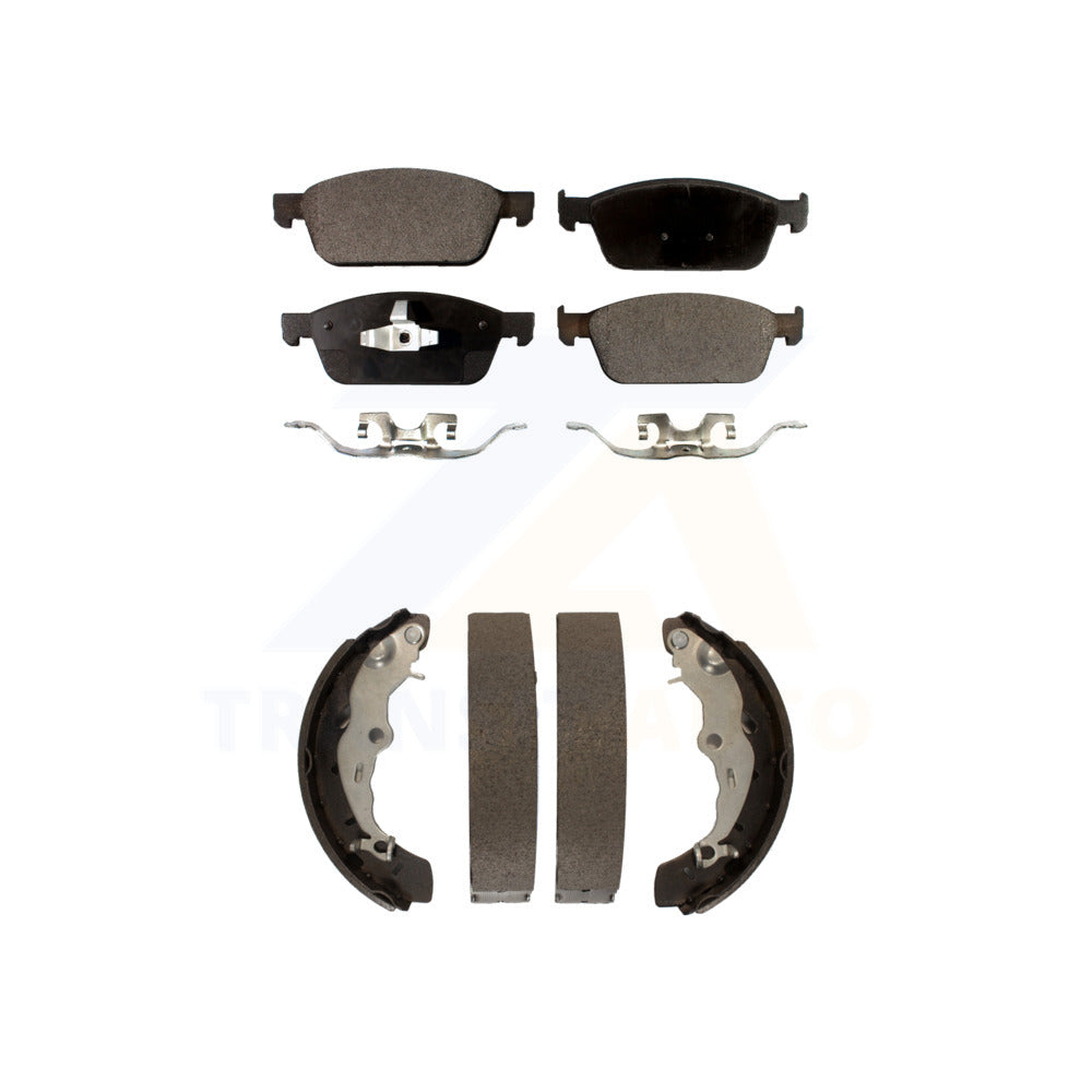 - INCLUDES: 1x Front Semi-Metallic Positive Plus Brake Pad Set (Hardware Included) + 1x Rear Top Quality Drum Brake Shoe Set