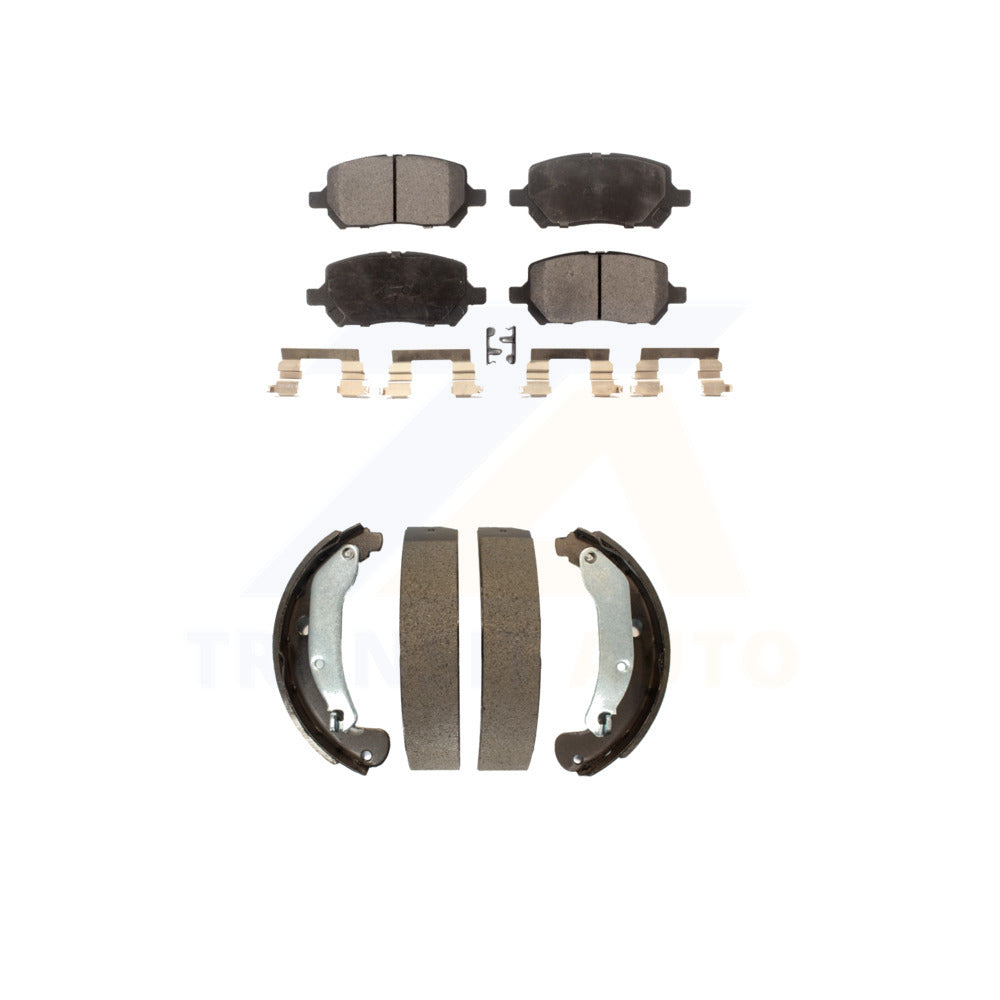 - INCLUDES: 1x Front Semi-Metallic Positive Plus Brake Pad Set (Hardware Included) + 1x Rear Top Quality Drum Brake Shoe Set