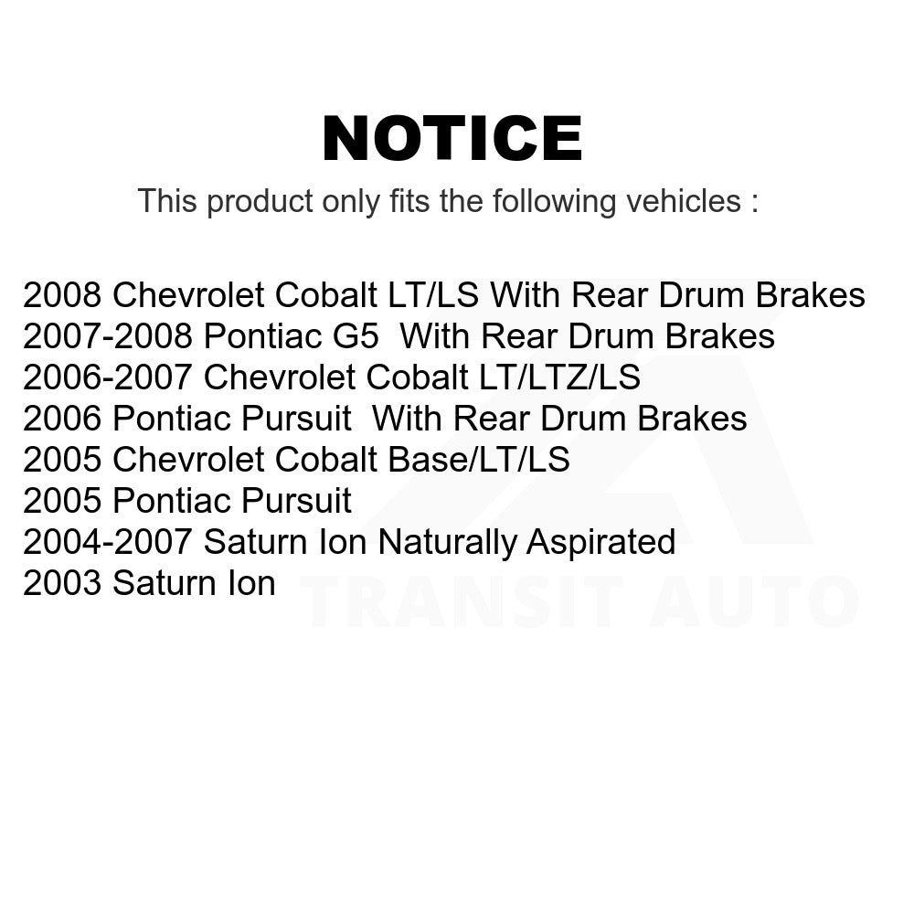 | 2008 | Pontiac | G5 | All | With Rear Drum Brakes | All | All | All | All |