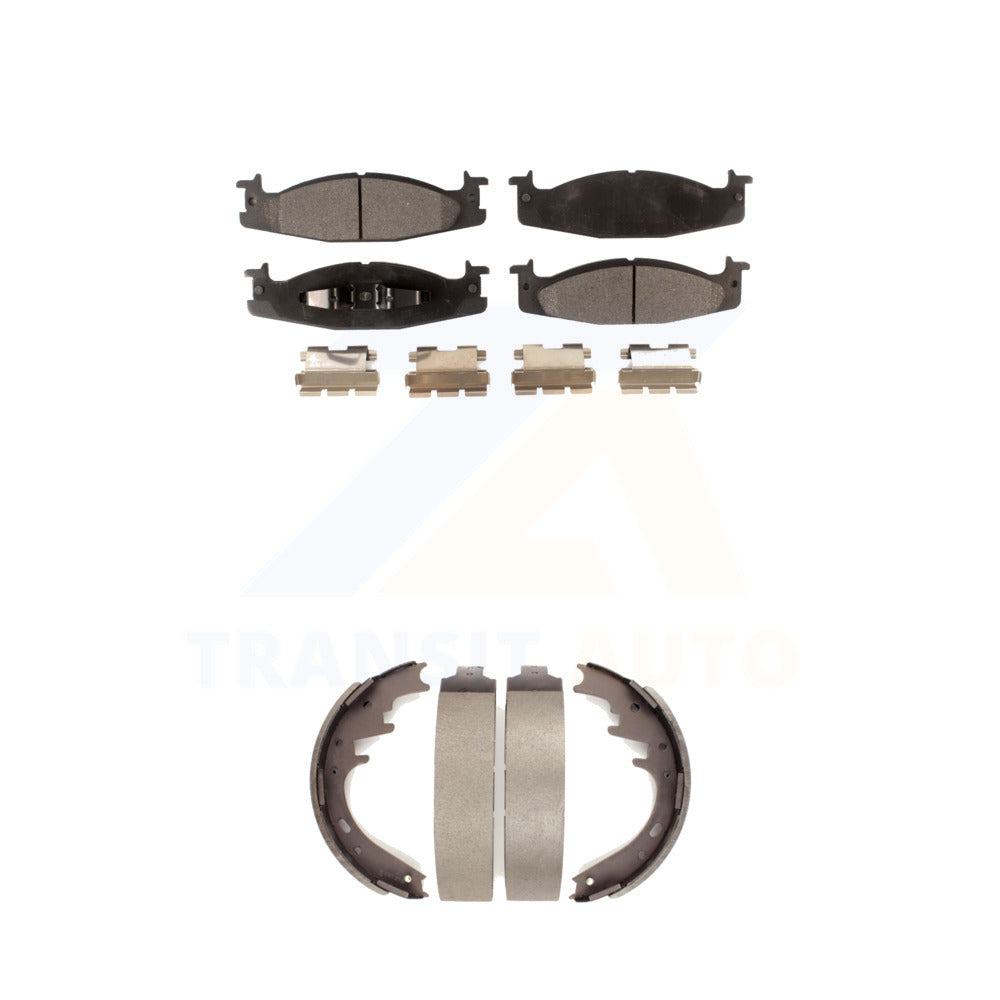 Front Rear Semi-Metallic Brake Pads Drum Shoes Kit For Ford E-150 Econoline Club