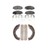 - INCLUDES: 1x Front Semi-Metallic Positive Plus Brake Pad Set (Hardware Included) + 1x Rear Top Quality Drum Brake Shoe Set