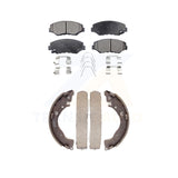 - INCLUDES: 1x Front Semi-Metallic Positive Plus Brake Pad Set (Hardware Included) + 1x Rear Top Quality Drum Brake Shoe Set