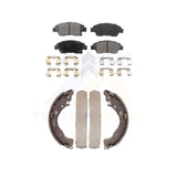 - INCLUDES: 1x Front Semi-Metallic Positive Plus Brake Pad Set (Hardware Included) + 1x Rear Top Quality Drum Brake Shoe Set