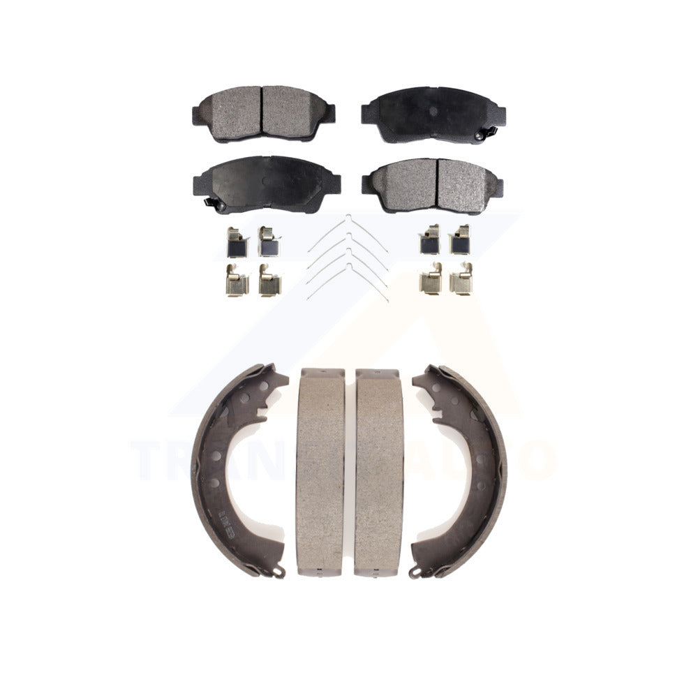 - INCLUDES: 1x Front Semi-Metallic Positive Plus Brake Pad Set (Hardware Included) + 1x Rear Top Quality Drum Brake Shoe Set