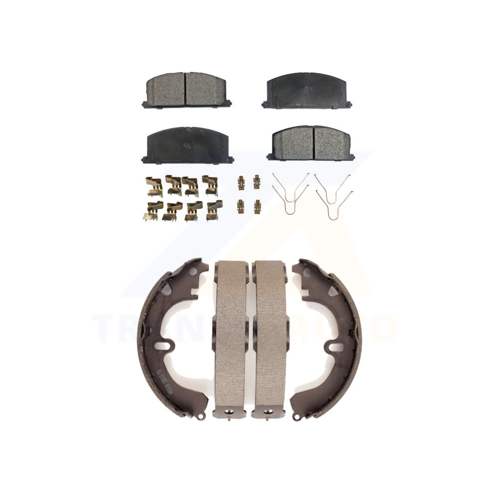 - INCLUDES: 1x Front Semi-Metallic Positive Plus Brake Pad Set (Hardware Included) + 1x Rear Top Quality Drum Brake Shoe Set
