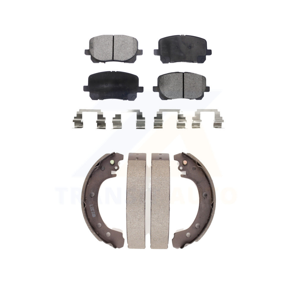 - INCLUDES: 1x Front Semi-Metallic Positive Plus Brake Pad Set (Hardware Included) + 1x Rear Top Quality Drum Brake Shoe Set