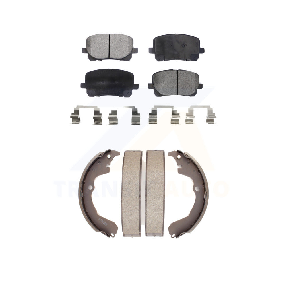 - INCLUDES: 1x Front Semi-Metallic Positive Plus Brake Pad Set (Hardware Included) + 1x Rear Top Quality Drum Brake Shoe Set