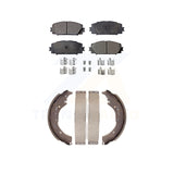 - INCLUDES: 1x Front Semi-Metallic Positive Plus Brake Pad Set (Hardware Included) + 1x Rear Top Quality Drum Brake Shoe Set