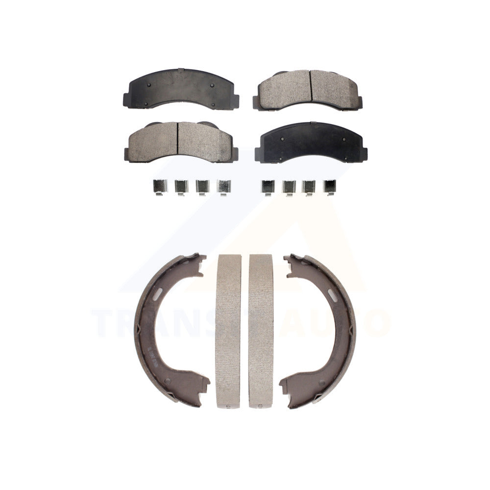 Front Rear Semi-Metallic Brake Pads & Parking Shoe Kit For 10-11 Ford F-150