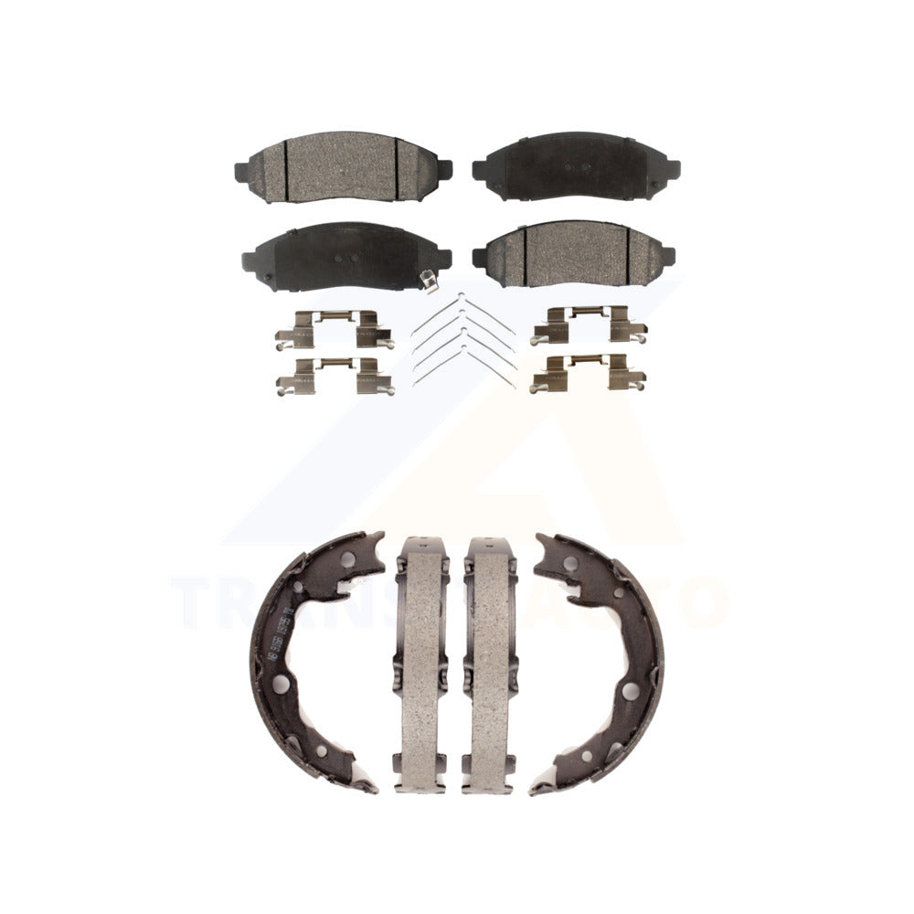 Front Rear Semi-Metallic Brake Pads Parking Shoes Kit For 11-13 Nissan LEAF