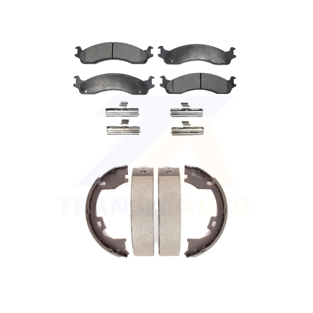 - INCLUDES: 1x Front Semi-Metallic Positive Plus Brake Pad Set (Hardware Included) + 1x Rear Top Quality Parking Brake Shoe