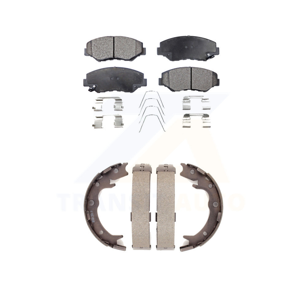 - INCLUDES: 1x Front Semi-Metallic Positive Plus Brake Pad Set (Hardware Included) + 1x Rear Top Quality Parking Brake Shoe