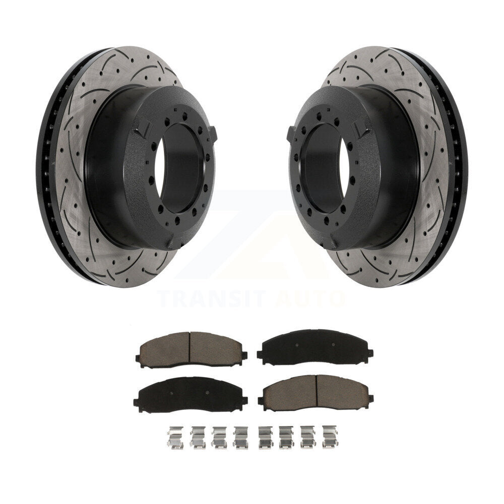 Part: Coated Slotted Drilled Disc Rotors and Ceramic Brake Pads Kit