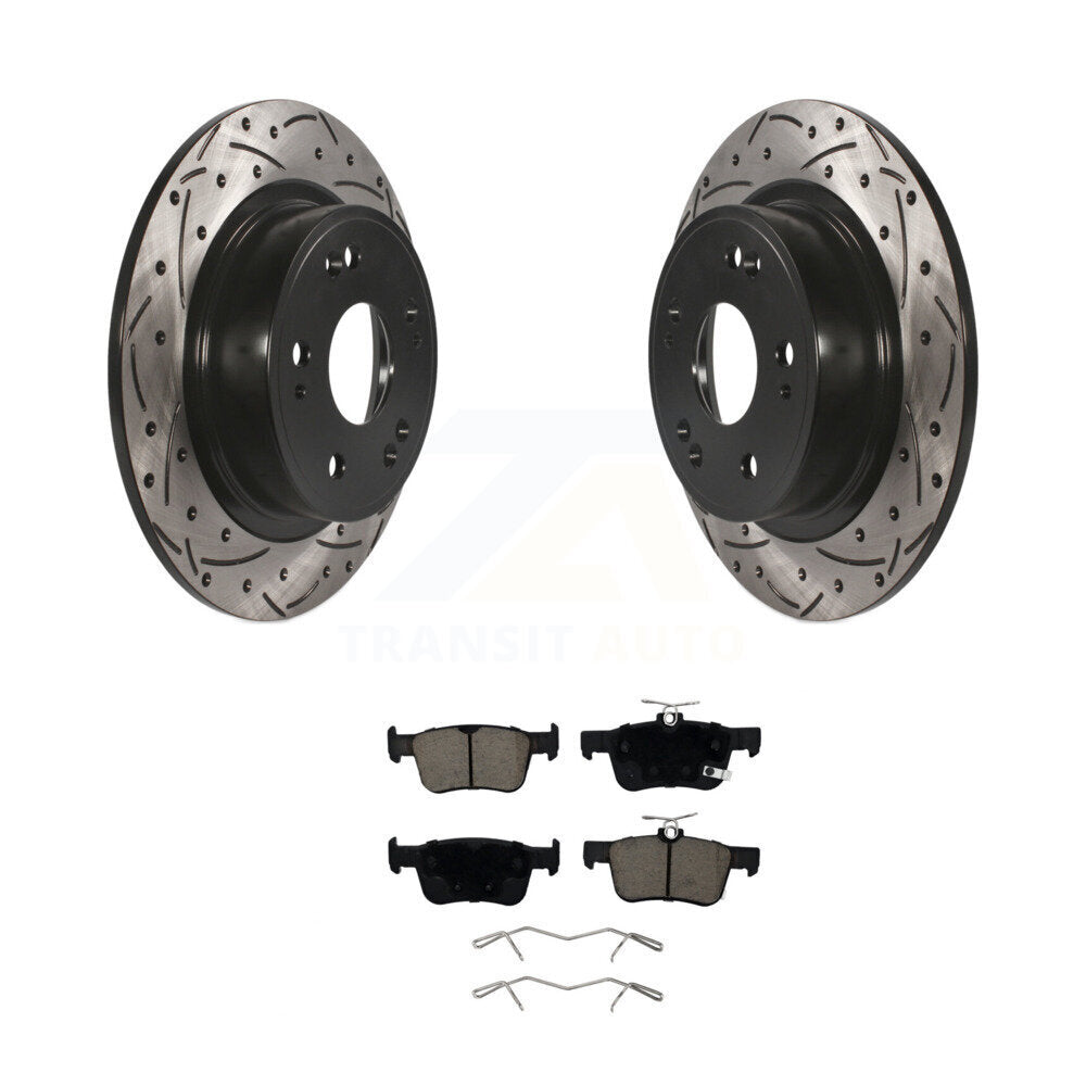 Rear Coat Drill Slot Disc Brake Rotor Ceramic Pad Kit For 2018-2022 Honda Accord
