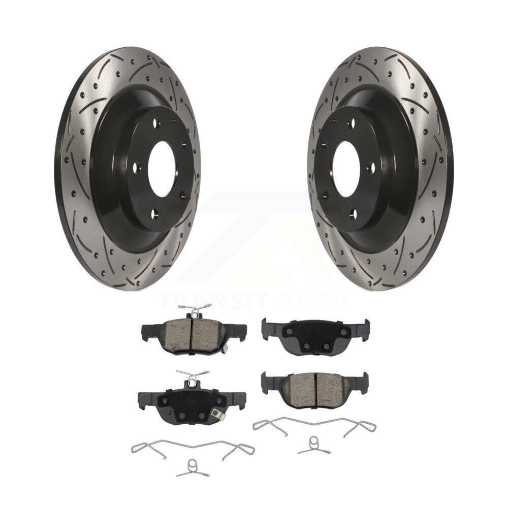 - Kit Includes: 2x Rear Coated Drilled Slotted DS-One Disc Brake Rotor (Both Side) + 1x Rear Ceramic CMX Brake Pad Set (Hardware Included)