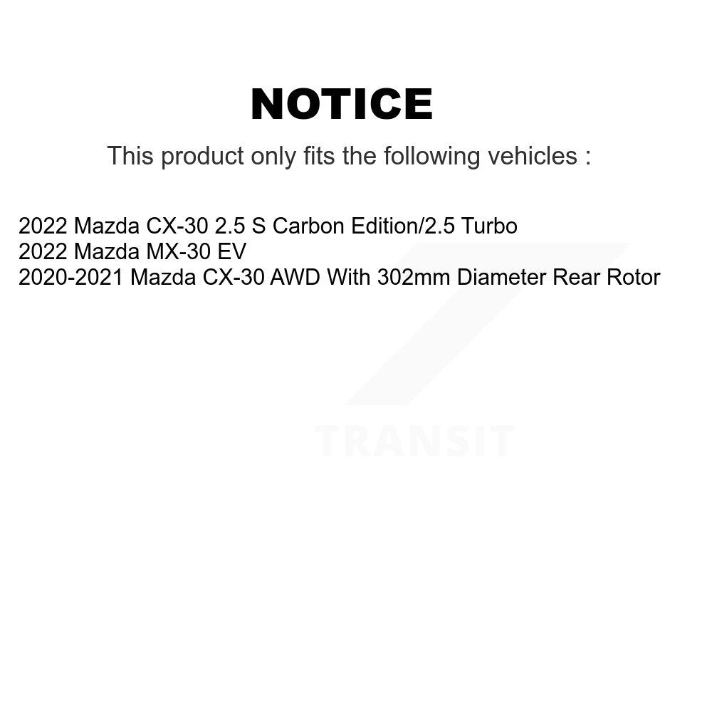 | 2021 | Mazda | CX-30 | All | With 302mm Diameter Rear Rotor | All | AWD | All | All |