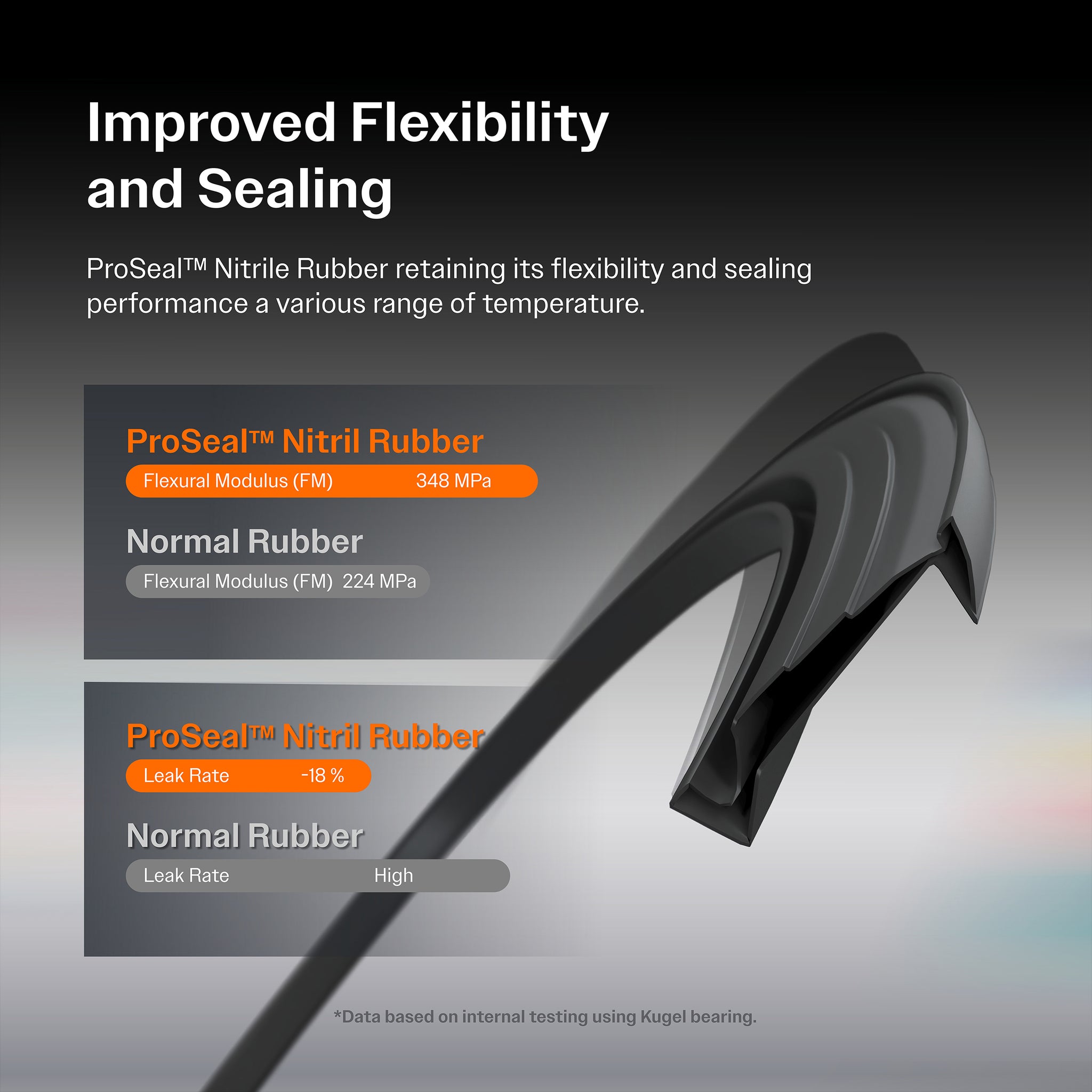 - Exclusive multi-lip seals are made with Nitrile Rubber (NBR) which can successfully function at temperatures of-40°C while resisting contaminants from fluids and debris