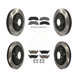 - INCLUDES: 2x Front Coated Drilled Slotted DS-One Disc Brake Rotor (Both Side) + 1x Front Ceramic CMX Brake Pad Set (Hardware Included) + 2x Rear Coated Drilled Slotted DS-One Disc Brake Rotor (Both Side) + 1x Rear Ceramic CMX Brake Pad Set (Hardware