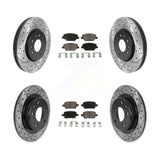 - INCLUDES: 2x Front Coated Drilled Slotted DS-One Disc Brake Rotor (Both Side) + 1x Front Ceramic CMX Brake Pad Set (Hardware Included) + 2x Rear Coated Drilled Slotted DS-One Disc Brake Rotor (Both Side) + 1x Rear Ceramic CMX Brake Pad Set (Hardware