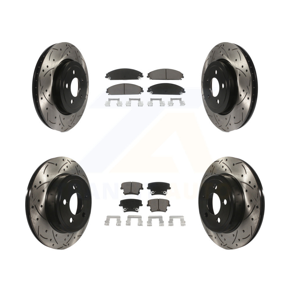 - INCLUDES: 2x Front Coated Drilled Slotted DS-One Disc Brake Rotor (Both Side) + 1x Front Ceramic CMX Brake Pad Set (Hardware Included) + 2x Rear Coated Drilled Slotted DS-One Disc Brake Rotor (Both Side) + 1x Rear Ceramic CMX Brake Pad Set (Hardware
