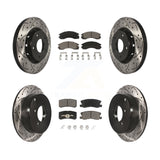 - INCLUDES: 2x Front Coated Drilled Slotted DS-One Disc Brake Rotor (Both Side) + 1x Front Ceramic CMX Brake Pad Set (Hardware Included) + 2x Rear Coated Drilled Slotted DS-One Disc Brake Rotor (Both Side) + 1x Rear Ceramic CMX Brake Pad Set (Hardware