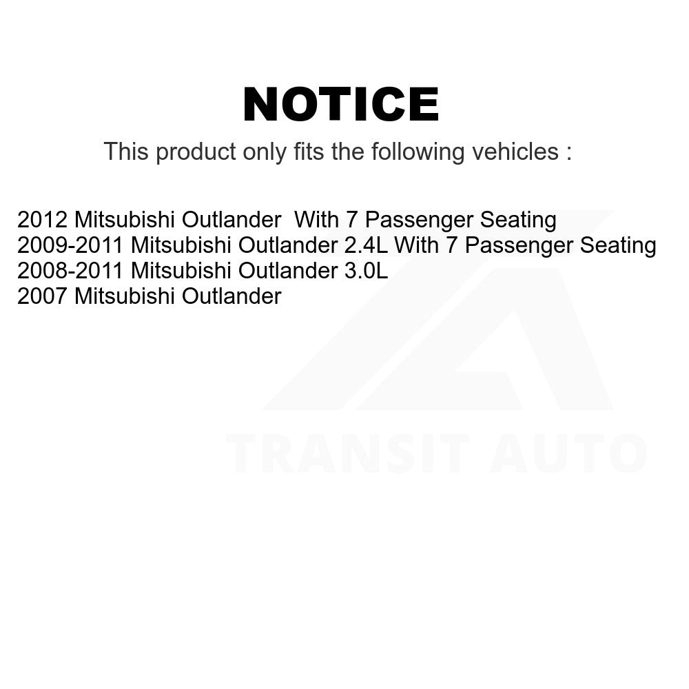 | 2012 | Mitsubishi | Outlander | All | With 7 Passenger Seating | All | All | All | All |