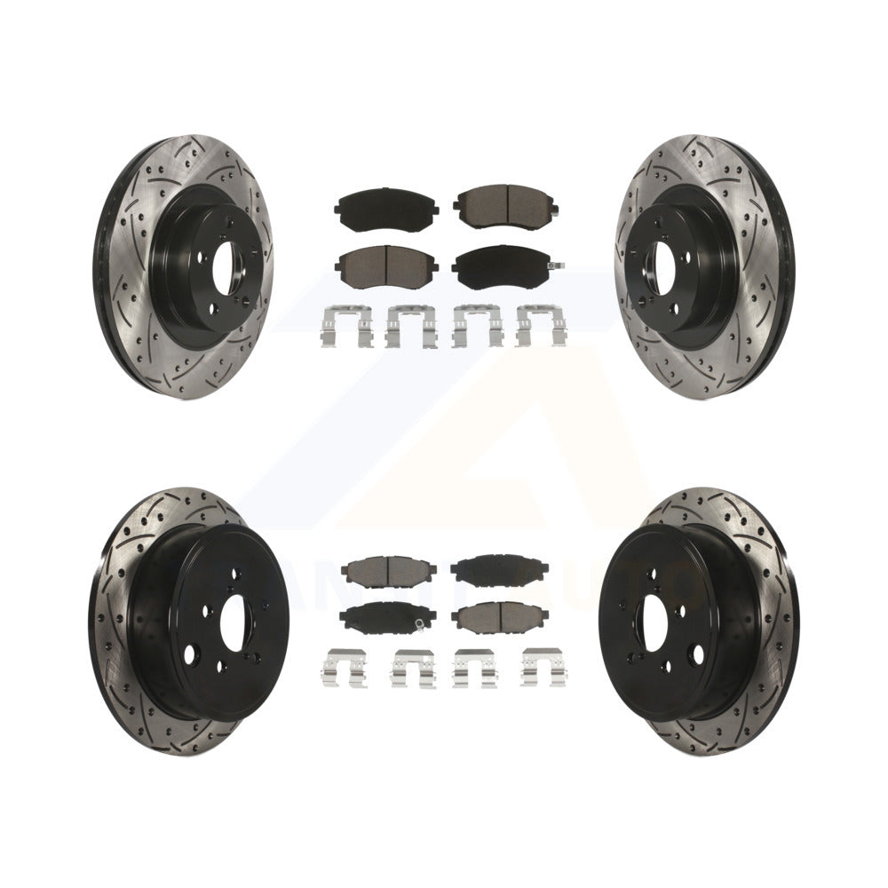 - INCLUDES: 2x Front Coated Drilled Slotted DS-One Disc Brake Rotor (Both Side) + 1x Front Ceramic CMX Brake Pad Set (Hardware Included) + 2x Rear Coated Drilled Slotted DS-One Disc Brake Rotor (Both Side) + 1x Rear Ceramic CMX Brake Pad Set (Hardware