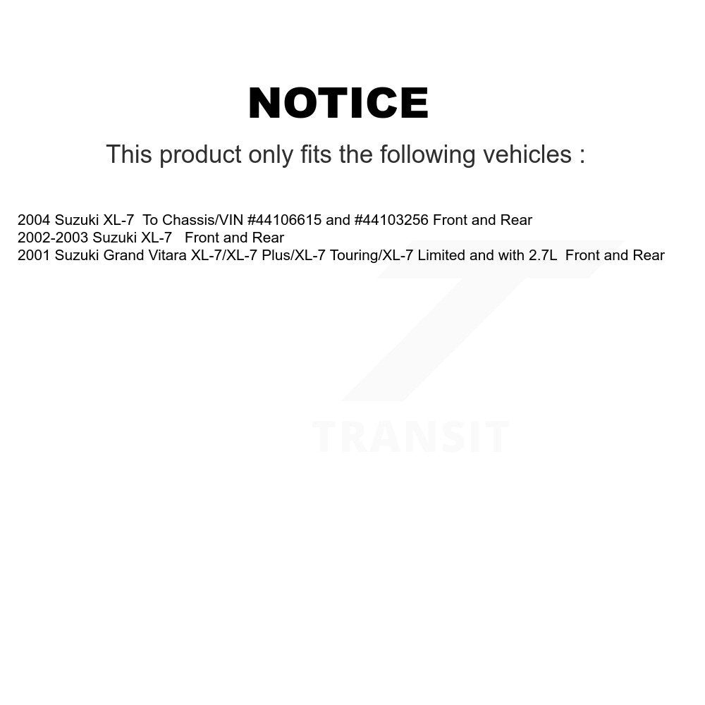 | 2004 | Suzuki | XL-7 | All | To Chassis/VIN #44106615 and #44103256 | All | All | All | All |