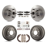 - COMPREND : 2 rotors et moyeux de frein à disque avant de qualité supérieure (des deux côtés) + 2 tambours de frein arrière de qualité supérieure (des deux côtés) + 1 jeu de plaquettes de frein avant en céramique TEC (matériel inclus) + 1 kit de matériel de frein à tambour arrière de qualité supérieure + 1 x Dru arrière de qualité supérieure