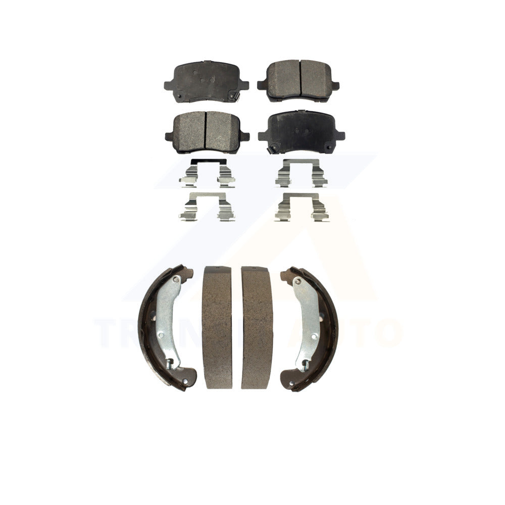 - INCLUDES: 1x Front Semi-Metallic Positive Plus Brake Pad Set (Hardware Included) + 1x Rear Top Quality Drum Brake Shoe Set