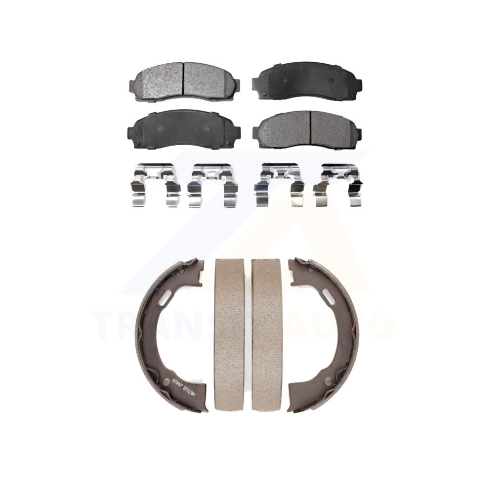 - INCLUDES: 1x Front Semi-Metallic Positive Plus Brake Pad Set (Hardware Included) + 1x Rear Top Quality Parking Brake Shoe