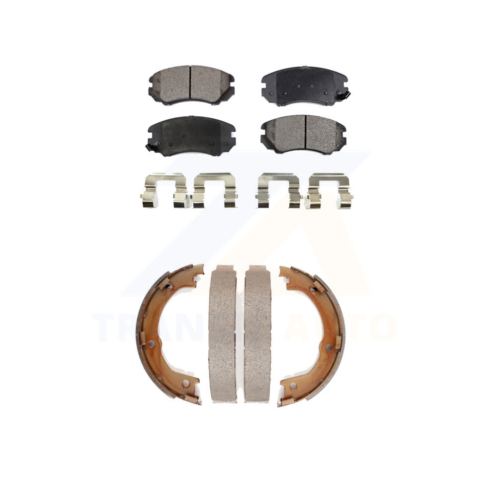 - INCLUDES: 1x Front Semi-Metallic Positive Plus Brake Pad Set (Hardware Included) + 1x Rear Top Quality Parking Brake Shoe