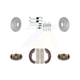 - COMPREND : 2 tambours de frein arrière Genius avec revêtement (des deux côtés) + 2 cylindres de roue de frein à tambour arrière Kingstar (des deux côtés) + 1 kit de matériel de frein à tambour arrière de qualité supérieure + 1 jeu de mâchoires de frein à tambour arrière de qualité supérieure.