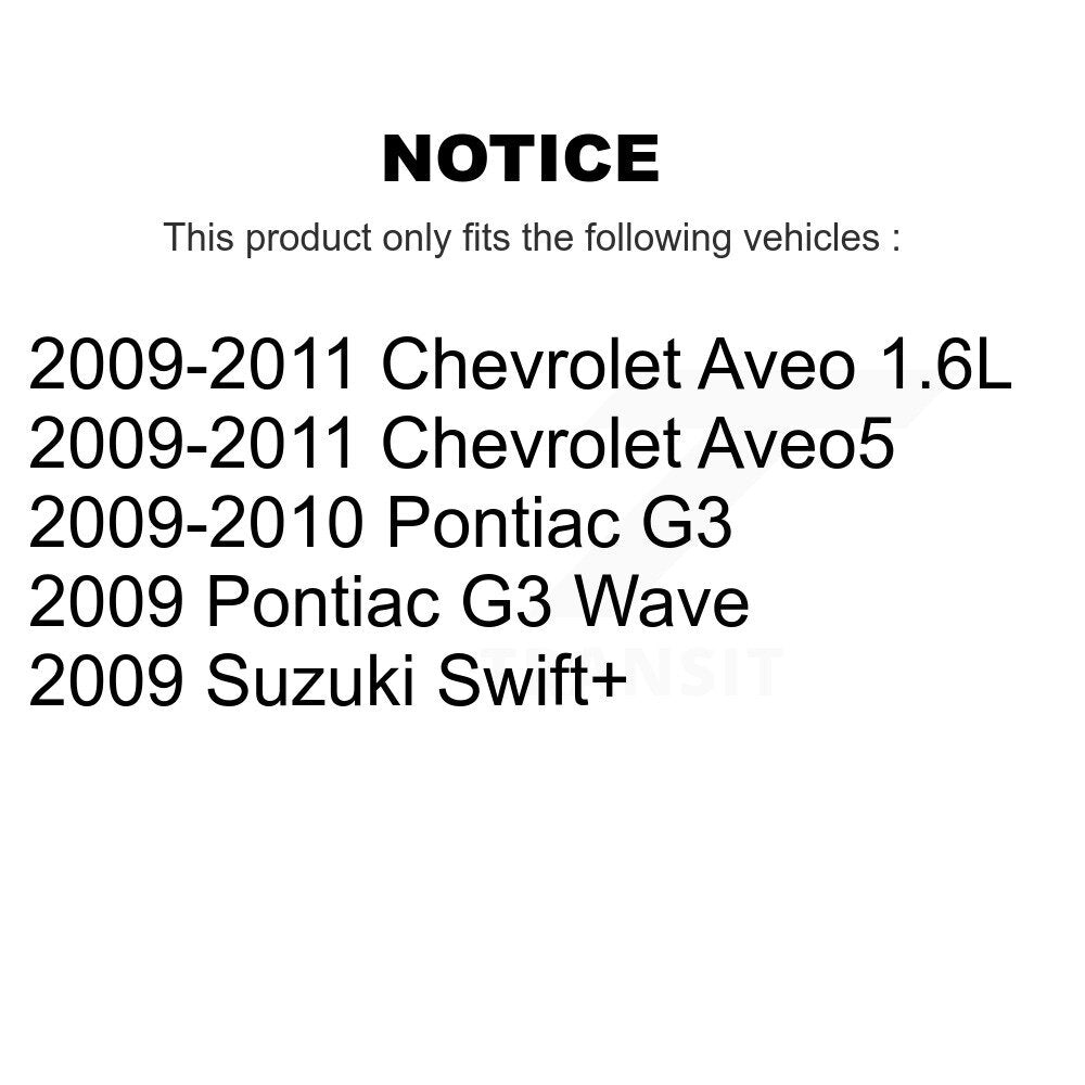 | 2010 | Chevrolet | Aveo | All | None | All | All | 1.6 | All |