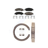 Front Ceramic Brake Pads Rear Parking Shoes Kit For Chevrolet Tahoe GMC Suburban