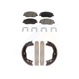 Front Ceramic Brake Pads & Rear Parking Shoes Kit For 09-12 Hyundai Genesis 3.8L