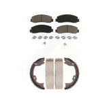 Front Ceramic Brake Pads & Rear Parking Shoe Kit For Ford F-350 Super Duty F-250