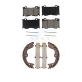 Front Ceramic Brake Pads Rear Parking Shoes Kit For INFINITI G37 Nissan 370Z Q60