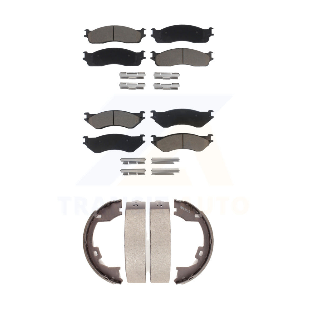 Front Rear Ceramic Brake Pads And Parking Shoes Kit For Dodge Ram 1500 2500 3500