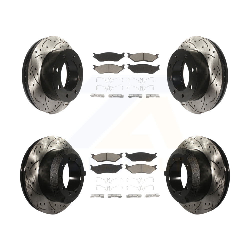Front Rear Drill Slot Disc Brake Rotor Ceramic Pad Kit For Ford F-450 Super Duty