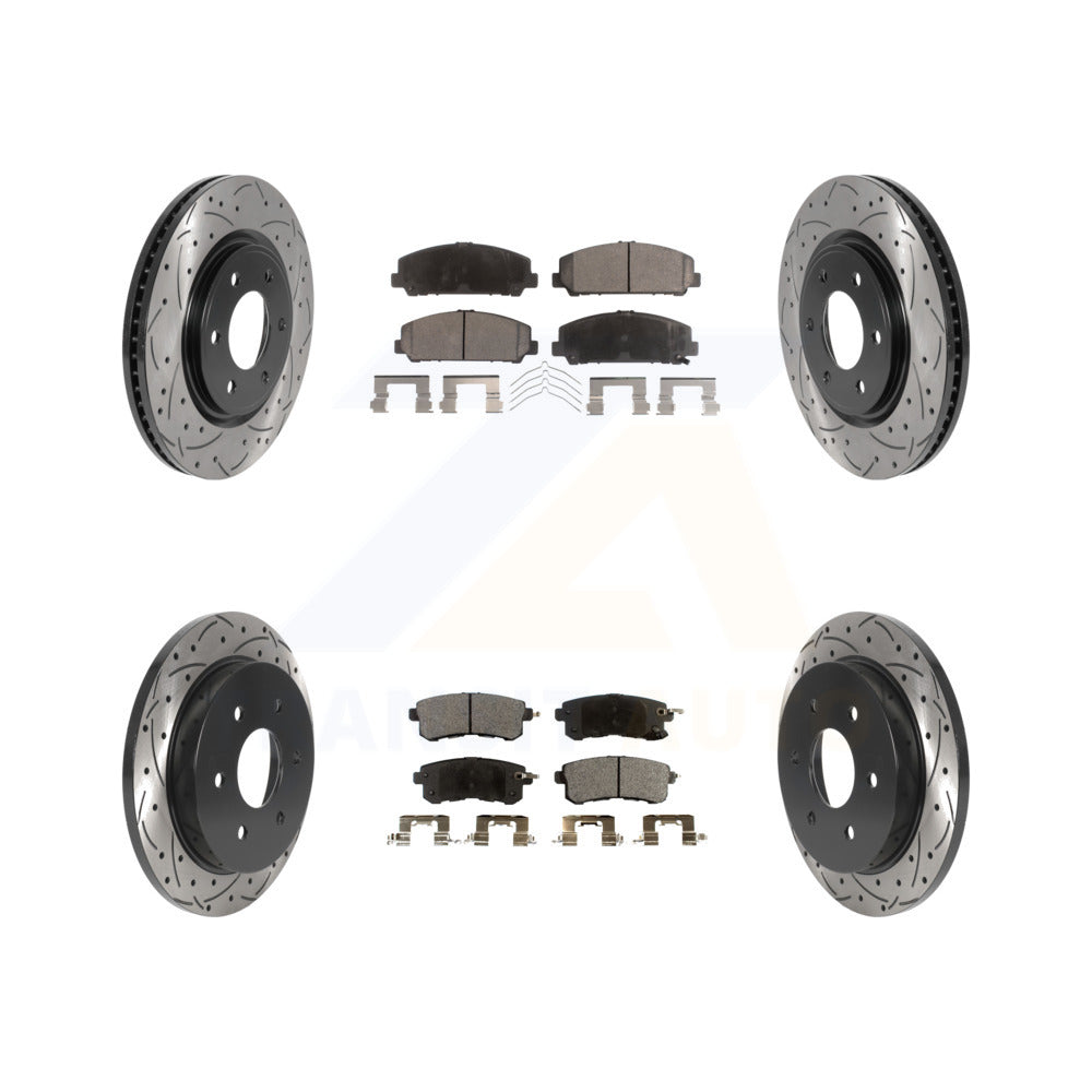 Front Rear Coated Drill Slot Disc Brake Rotors Ceramic Pad Kit For Nissan Armada