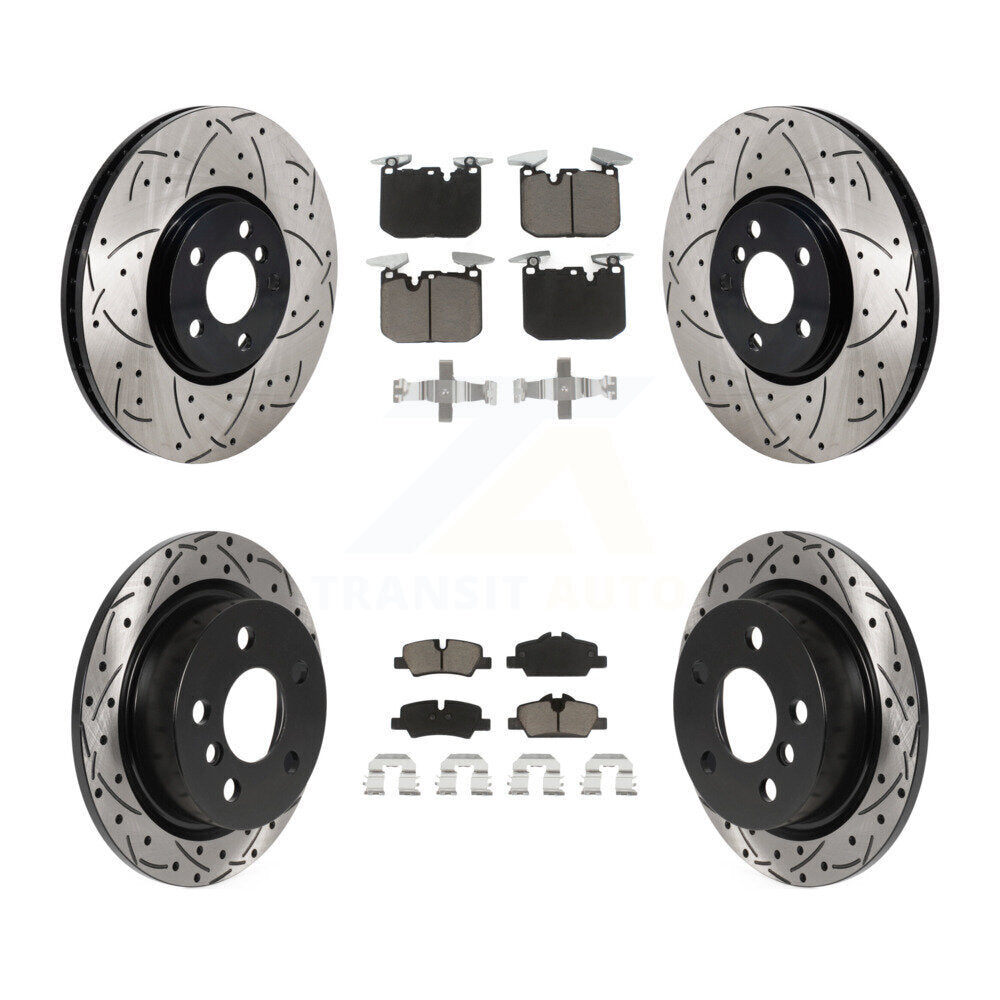 Front Rear Coated Drilled Slot Disc Brake Rotors Ceramic Pad Kit For Mini Cooper