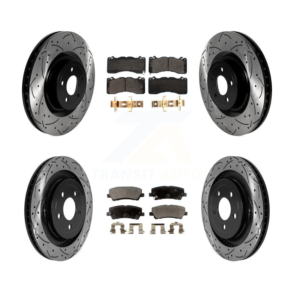 [Front+Rear] 2022 Ford Mustang 5.0L Performance Drilled & Slotted Brake Rotor & Ceramic Pads Kit For Max Braking