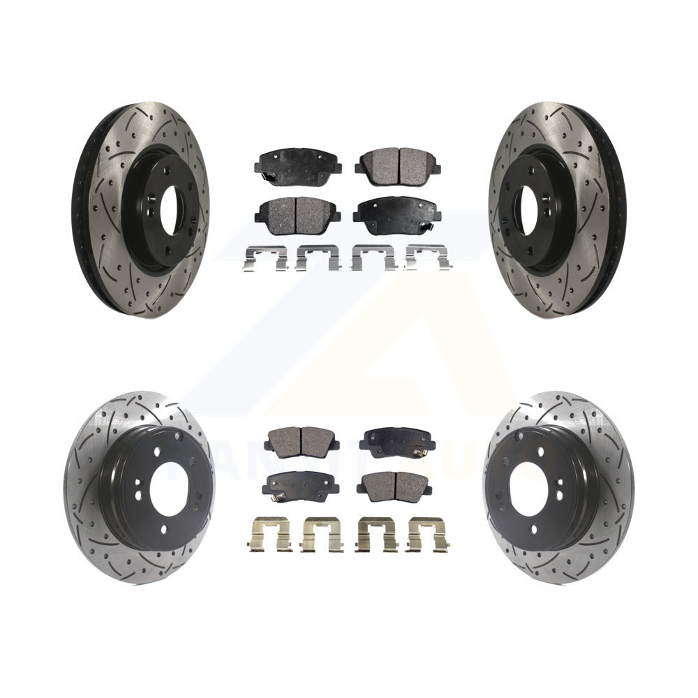 Front Rear Drill Slot Brake Rotors Ceramic Pad Kit For Hyundai Sonata Kia Optima