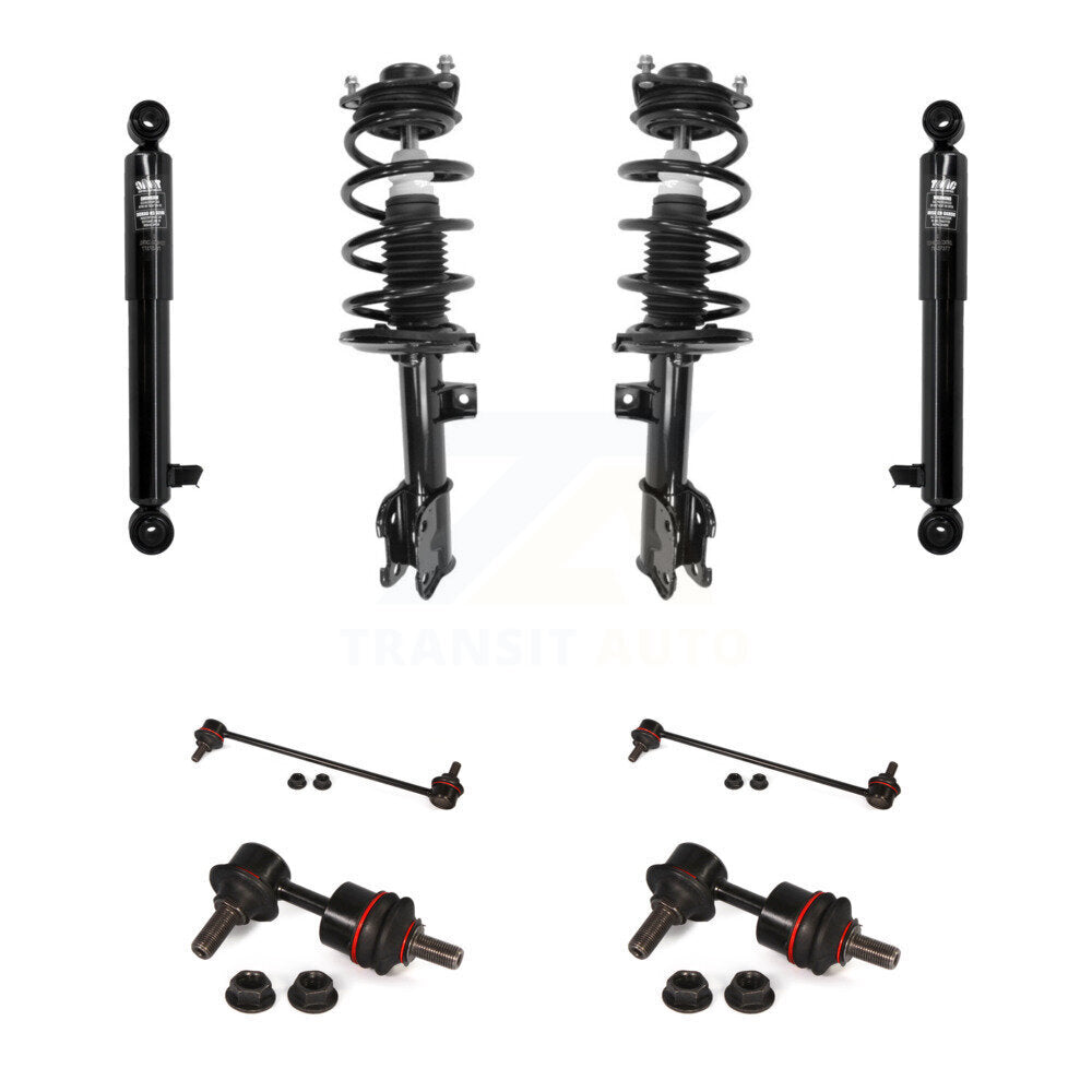 - Kit Includes: 2x Front Unity Automotive Suspension Strut and Coil Spring Assembly (Both Side) + 2x Front TOR Suspension Stabilizer Bar Link Kit (Both Side) + 2x Rear TMC Shock Absorber (Both Side) + 2x Rear TOR Suspension Stabilizer Bar Link Kit (Bot